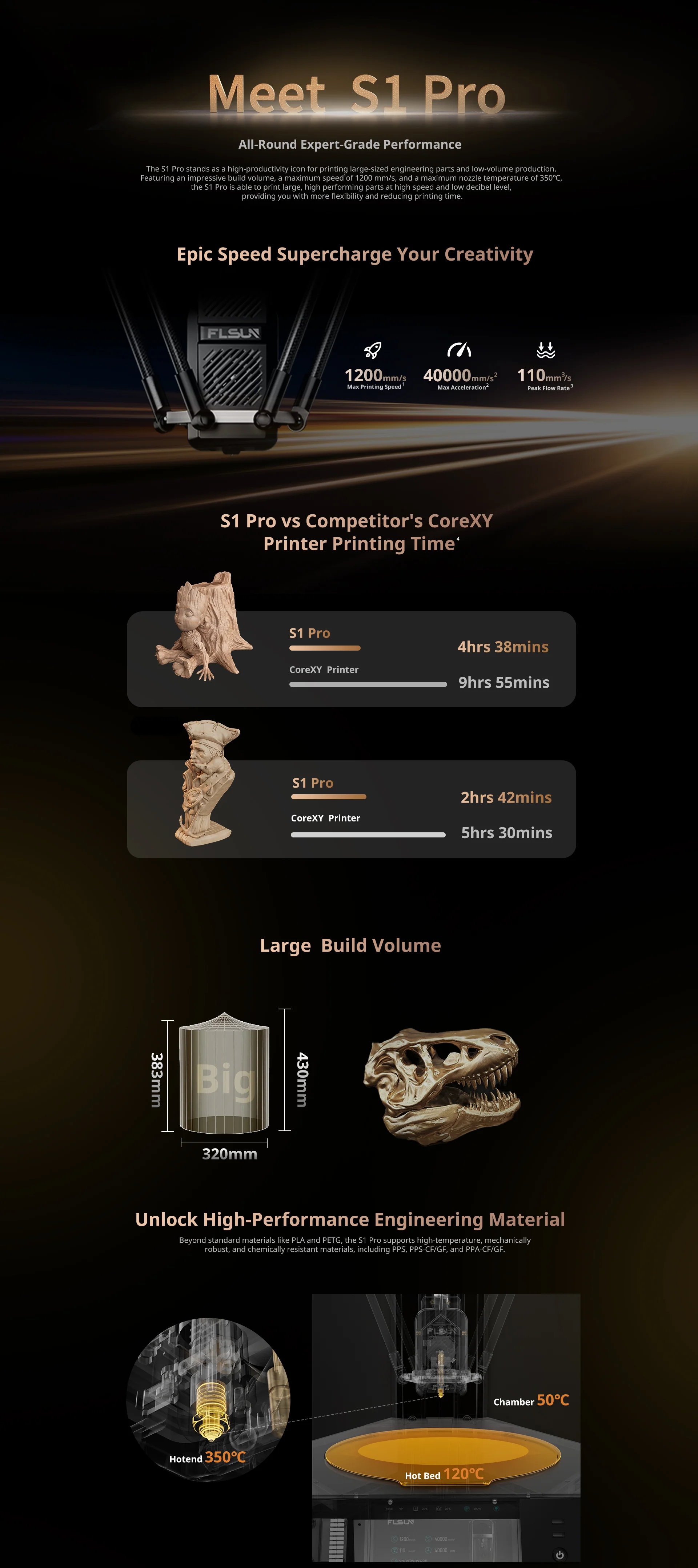 • Max Hot End Temp. at 350℃, Open for High-Performance Materials