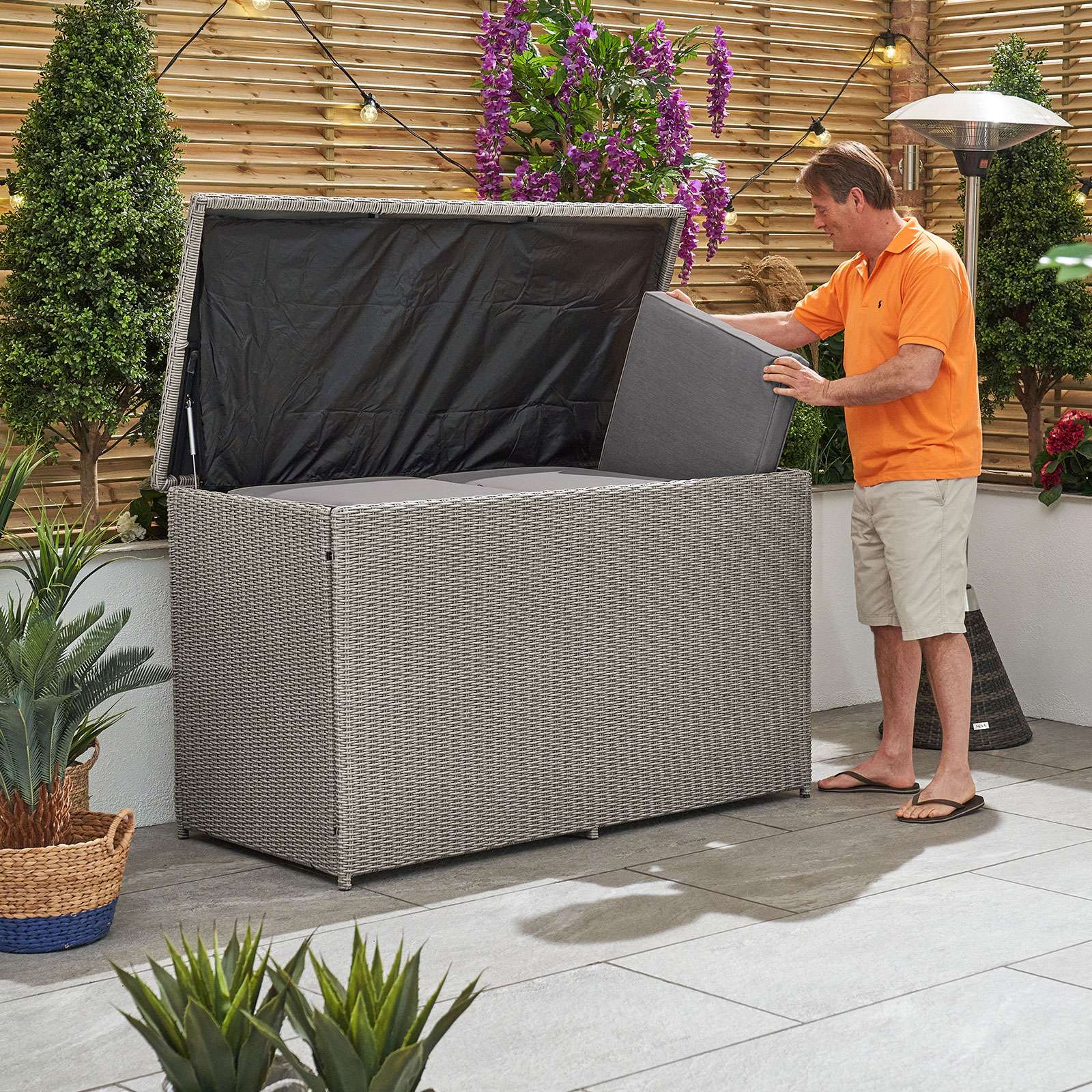 California Weather Proof Storage Chest Style Box with Liner in Grey Rattan Weave
