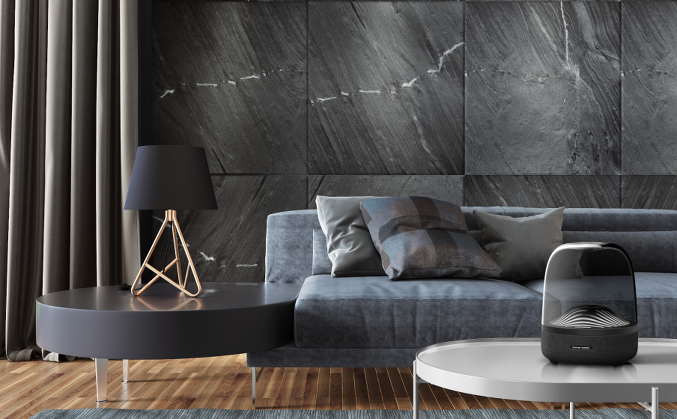 Place the Harman Kardon Aura Studio 3 anywhere in your home. Its elegant shape and minimal footprint fits right in. creating a stunning feature that blends in beautifully with your décor.