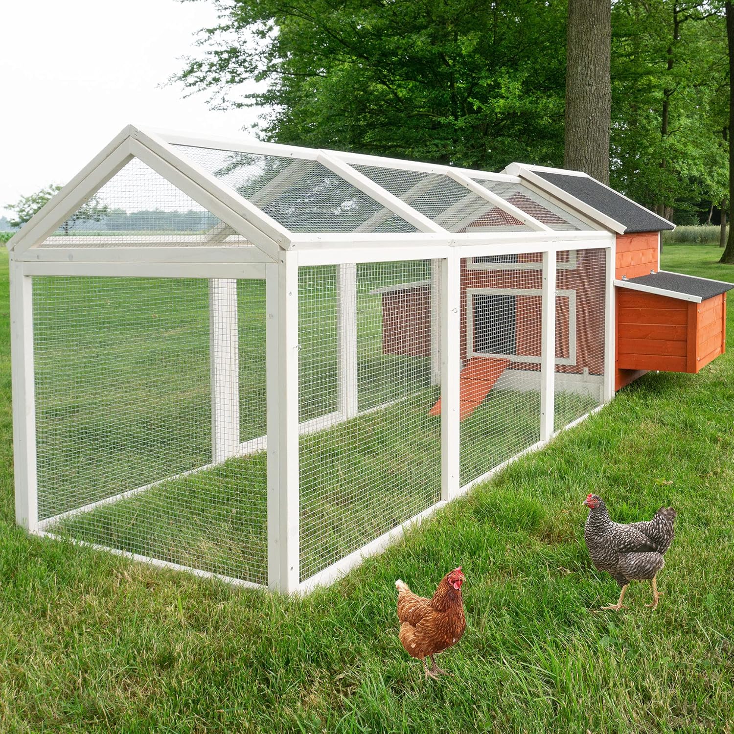 großer Hühnerstall - mit Regen und Sonnenschutz – Hühnerstall aus massivem Vollholz & stabilem Draht – schnell zu reinigen – witterungsbeständig dank hochwertiger Lasur –mit oder ohne Voliere