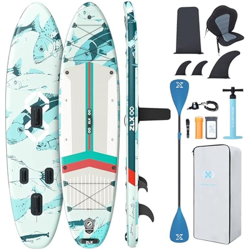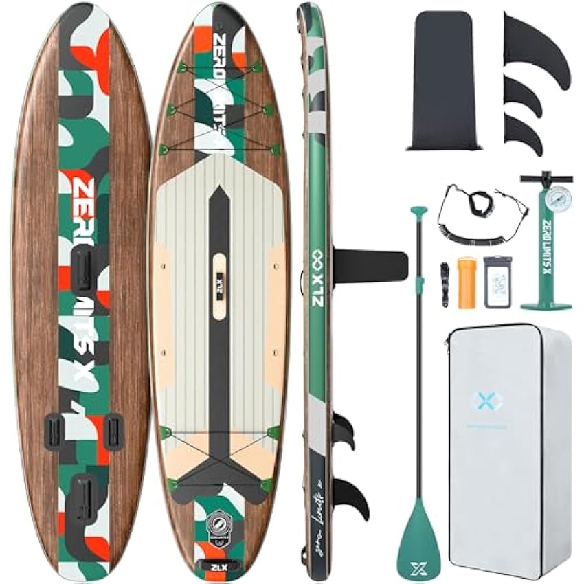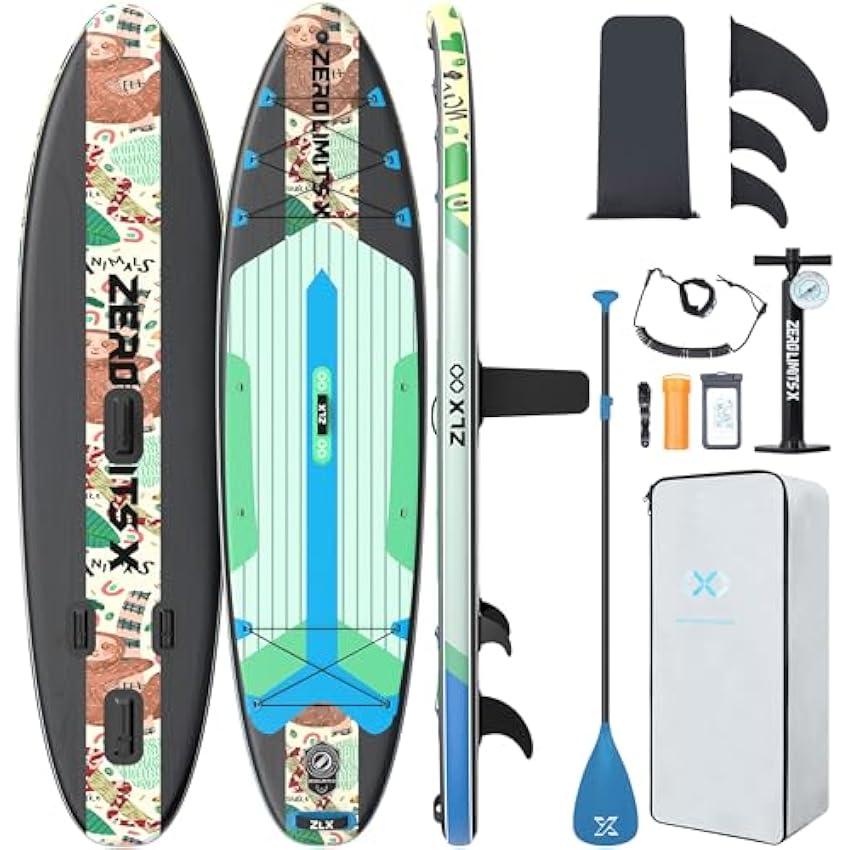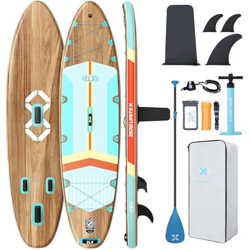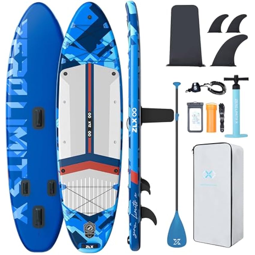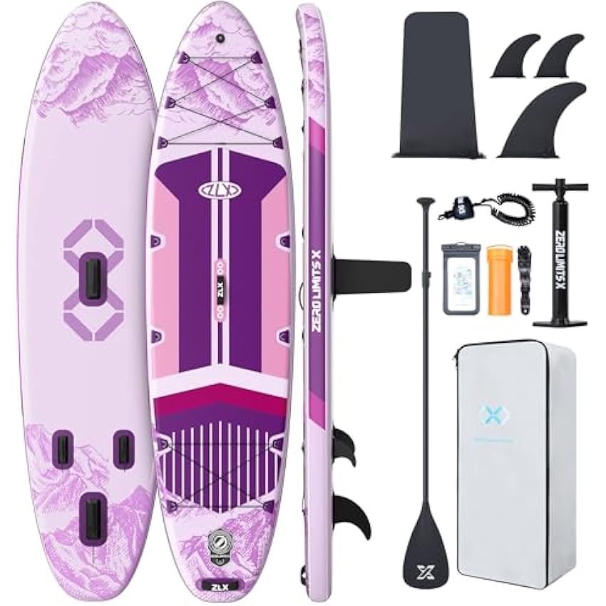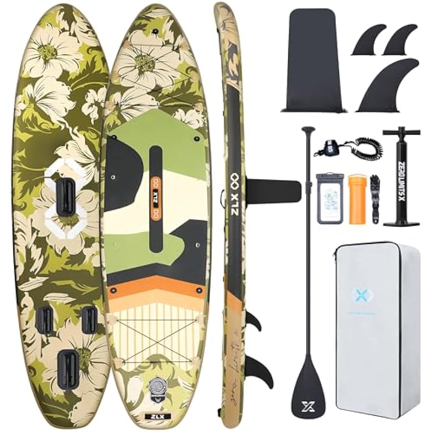 ZLX 10'6" Inflatable Stand Up Paddle Board, Extra Wide Stable Non-Slip Deck Pad, Unique Center Fin, Portable Paddleboard for Adults, Premium SUP for All Skill Levels